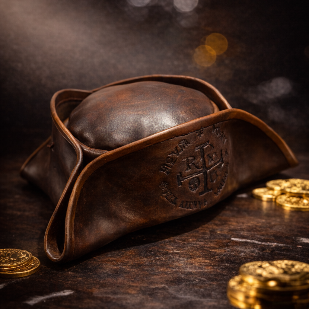 The Legacy Tricorn Leather Hat is crafted for those who refuse to blend in. Inspired by iconic 18th-century tricorn silhouettes, this bold headpiece fuses historical character with modern durability.